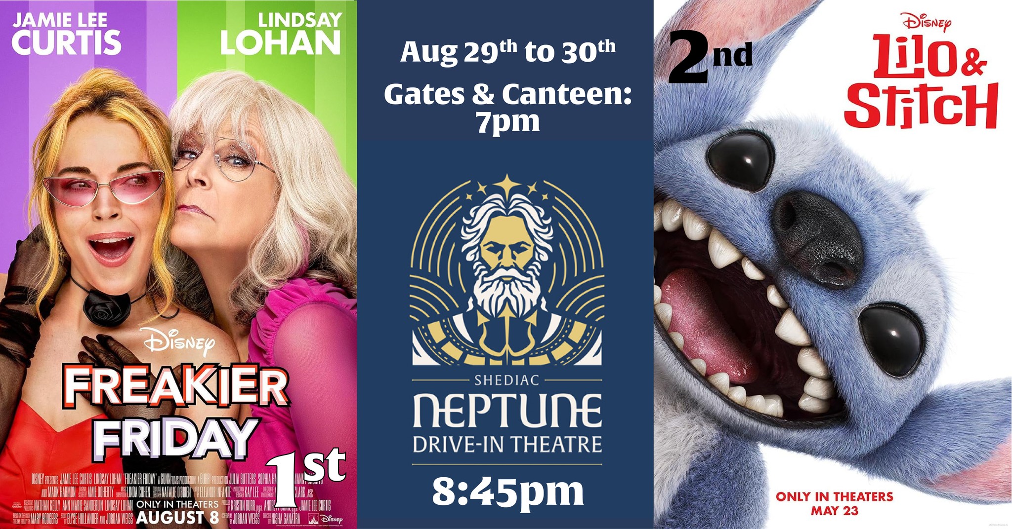 We’re back to 3 nights a week (Friday, Saturday, Sunday) for the rest of the season — and this weekend’s double feature is a wild ride: Freakier Friday (body swaps, chaos, and questionable fashion choices) Lilo & Stitch (ohana, surfing, and a blue alien who eats sandwiches sideways) Friday, Saturday & SundayGates open at 7:30pmMovies start at 8:45pm Tune to 92.7 FM for audio! ADMISSION: $10.44+hst for both films$6.96+hst for ages 5–12FREE for toddlers 4 & under$34.80+hst for a CarloadCHEAP NIGHT (SUNDAY): $6.96+hst per personCash,…