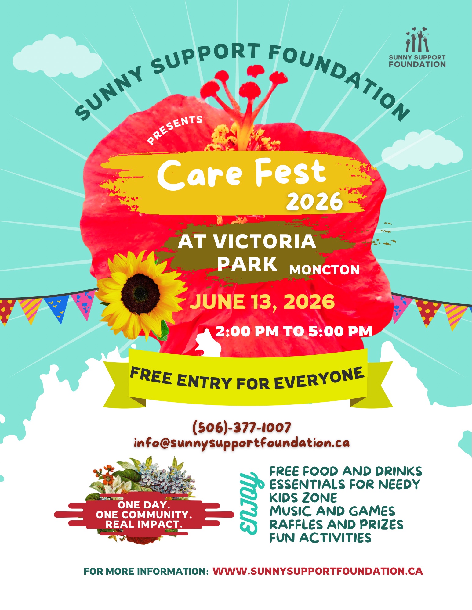 Event by Sunny Support Foundation Victoria Park, New Brunswick Duration: 3 hr Sunny Support Foundation (SSF) Care Fest 2026 Join us for a heartwarming and high-energy afternoon where community meets compassion! Sunny Support Foundation is bringing people together for a vibrant celebration of giving, connection, and impact — and you’re invited to be part of it. What’s in store: Free food & refreshments for all attendees Clothing support and essential items for those in need Fun-filled kids’ zone Games, entertainment, music & interactive activities Inspiring…