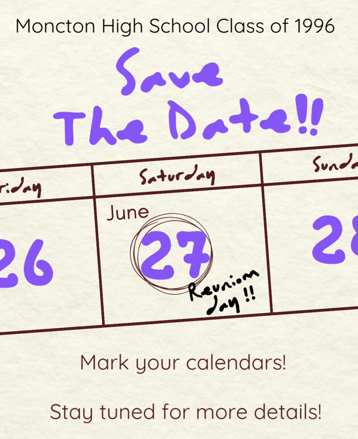 Find out more »Moncton High School Reunion – Class of ’96