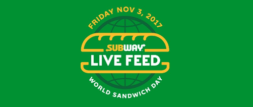 November 3, 2017 | By Aaron Armstrong TODAY: Buy a sub & drink, get a free sub at Subway with World Sandwich Day